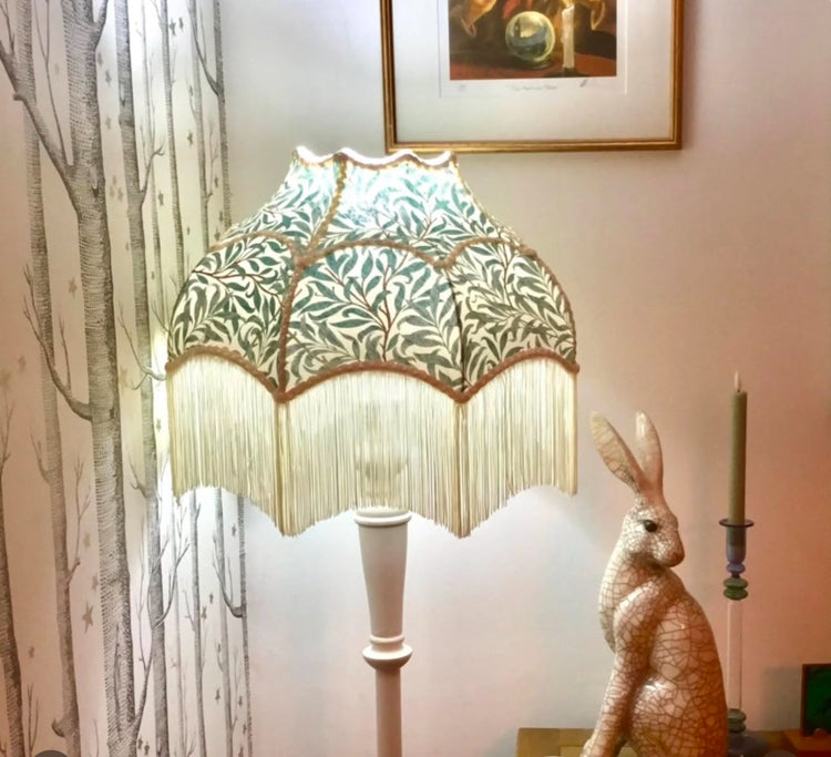 Handmade William Morris Lampshade Willow Bough – Fringed Shade for Table or Ceiling Light